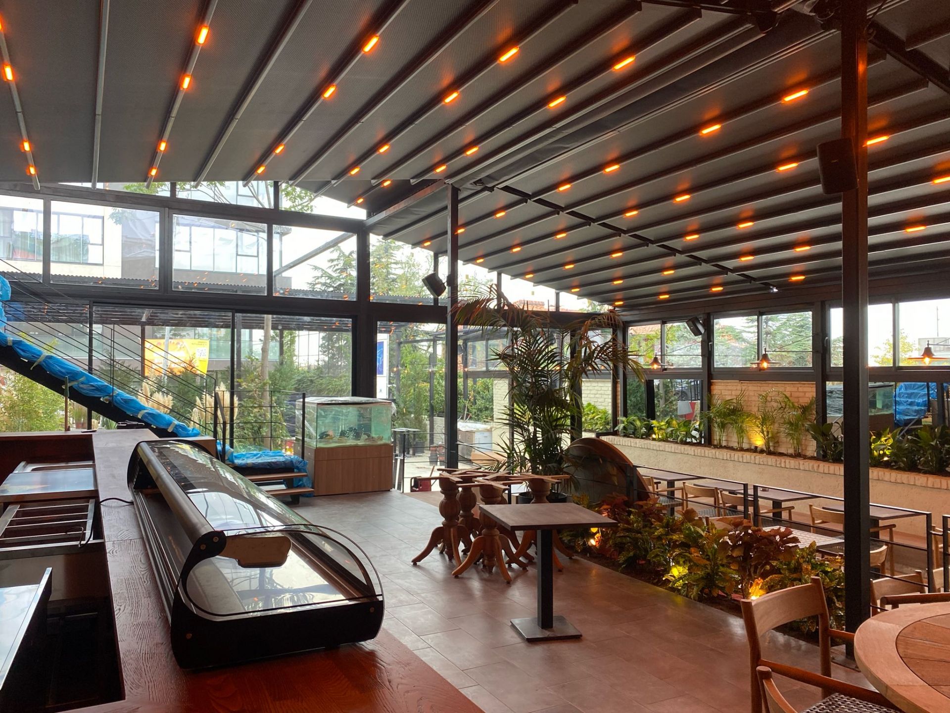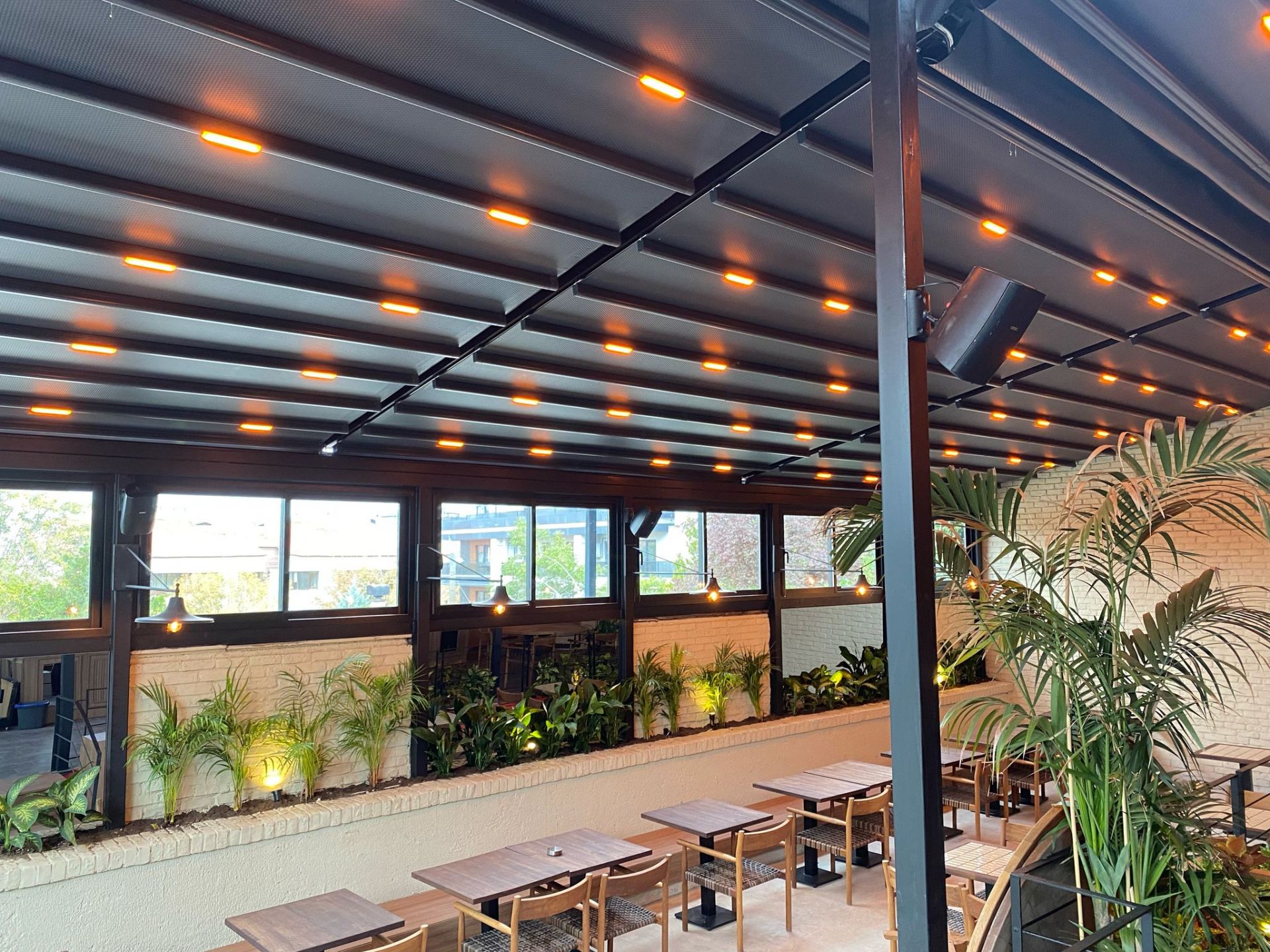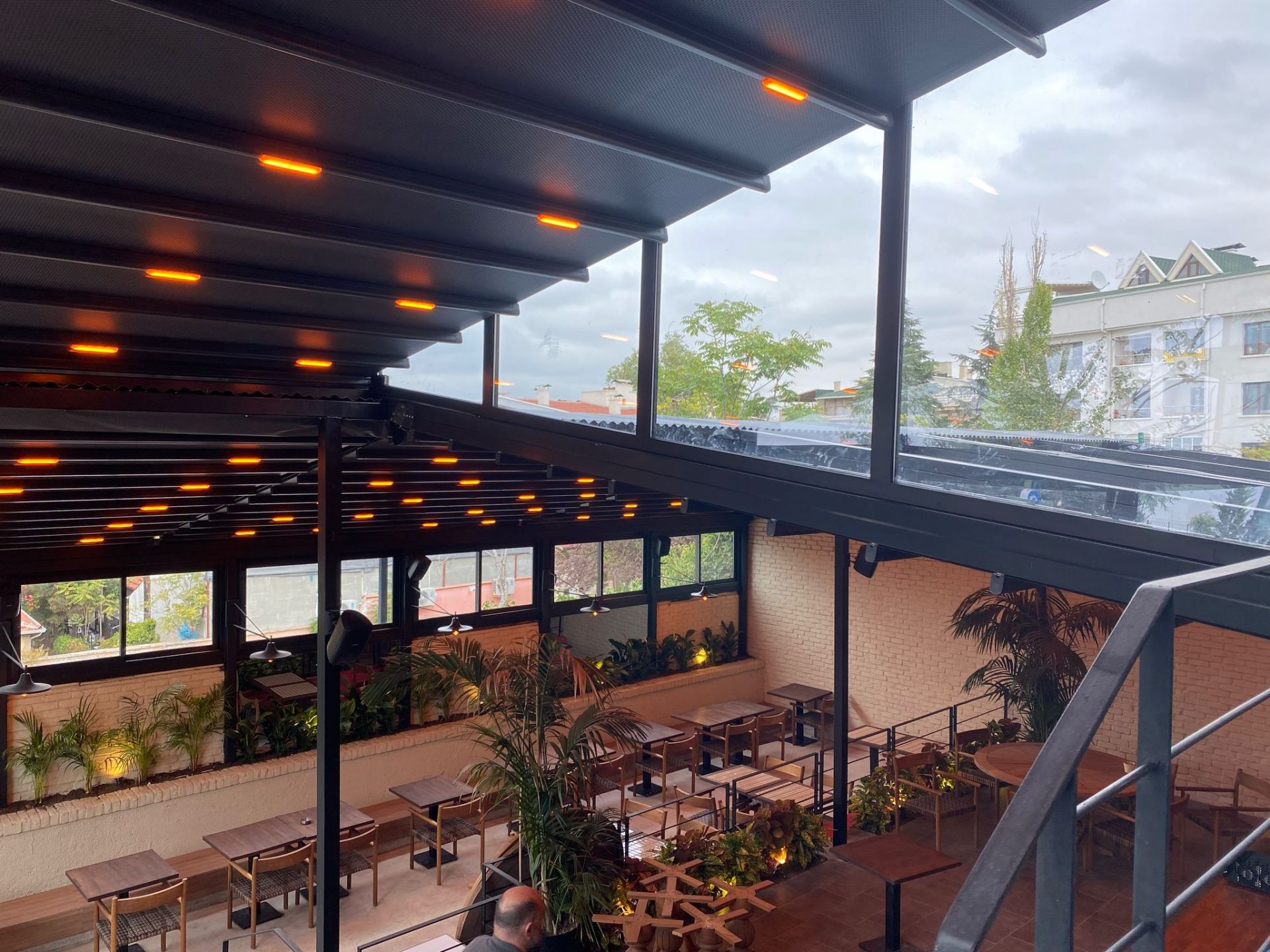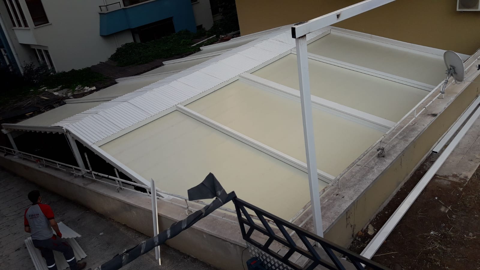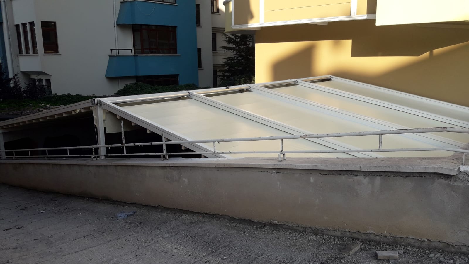 Geniş cepheli bahçe, cafe restaurant teras gibi mekanlarınız için çift yöne açılımlı tente sistemleri en uygun seçim olacaktır.