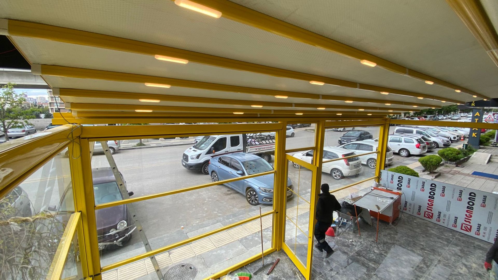 Alüminyum aksamlı, taşıyıcı raylar 110x150 petek doku kumaş ithal sioen ledler samsung, ön direkler 110x145.
